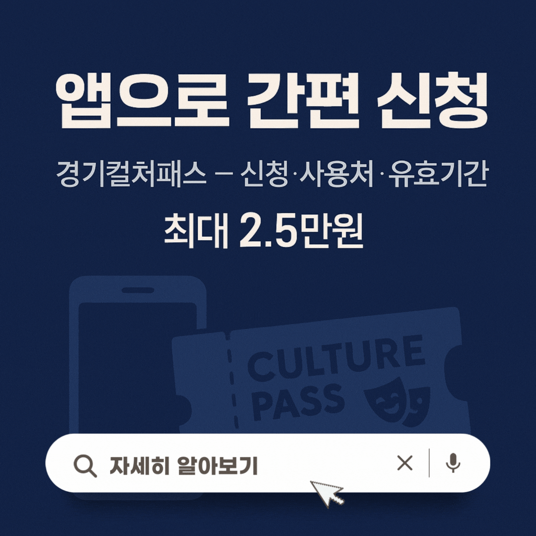 경기컬처패스는 경기도민의 문화생활을 지원하는 쿠폰 제도입니다. 2025.09.15부터 접수하며 예산 소진 시 종료됩니다. 연 25,000원 한도 내에서 영화·공연·전시·스포츠·숙박·액티비티에 사용할 수 있고, 사용 전 제휴처 등록이 필요합니다.